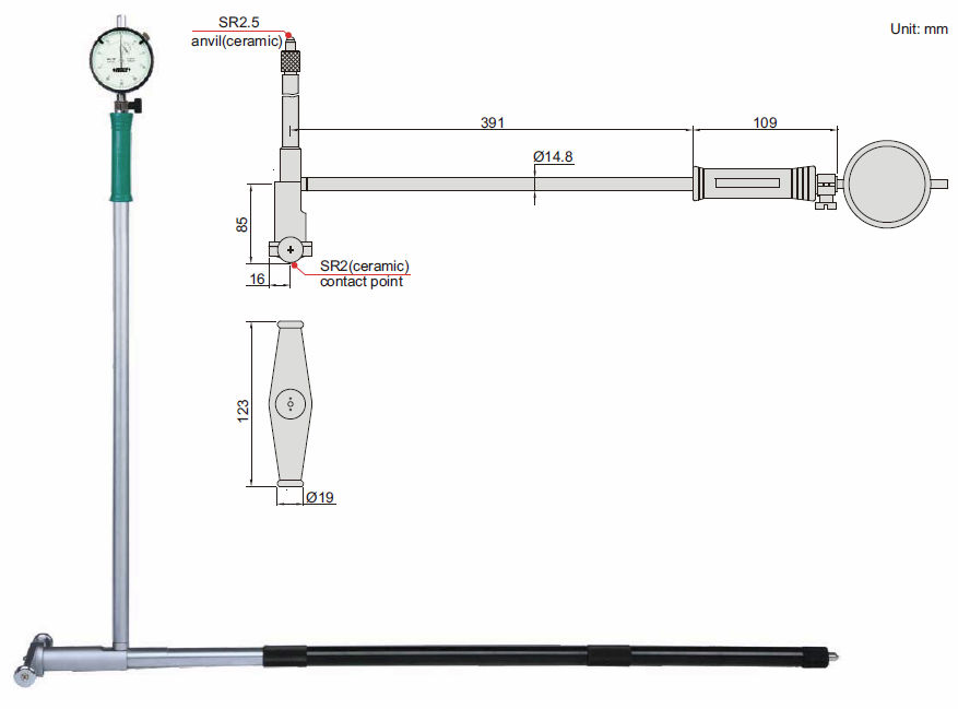 - Med analogt mätur 10 mm x 0.01 mm (art.nr 2308-10FA)