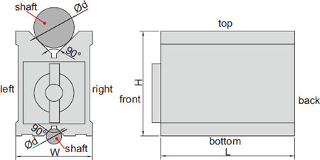 - Blocken har två V-spår 90°, för cyl. ämnen Ø6 till Ø67 mm