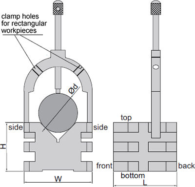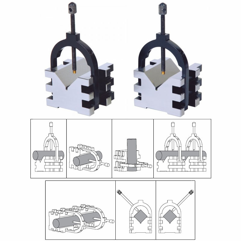 - Blocken har ett 90° V-spår vardera, för Ø5-50 mm