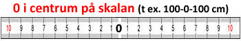 CM-markeringarna löper från 0 till 100 cm åt vardera håll