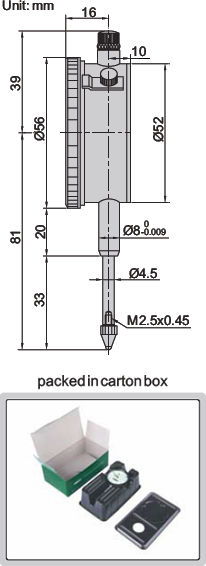 Mätområde: 25 mm (1 mm per varv)