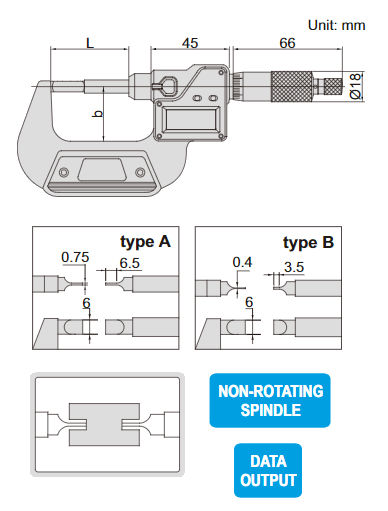 INSIZE Digital mikrometer med platta spetsar, 0-25mm, Typ B