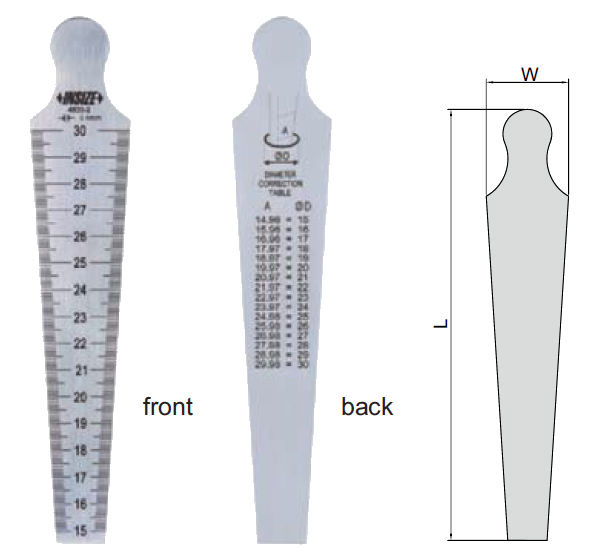 - Vid mätning av hål så måste måttet korrigeras pga tjockleken på mallen, en tabell finns på baksidan