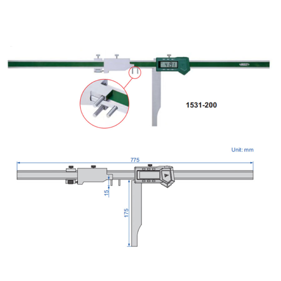 INSIZE Digitalt symmetri-skjutmått för kilspår 3-250 mm