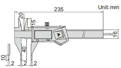 - Skjutmått med små mätspetsar; storlek 2x2x10 mm