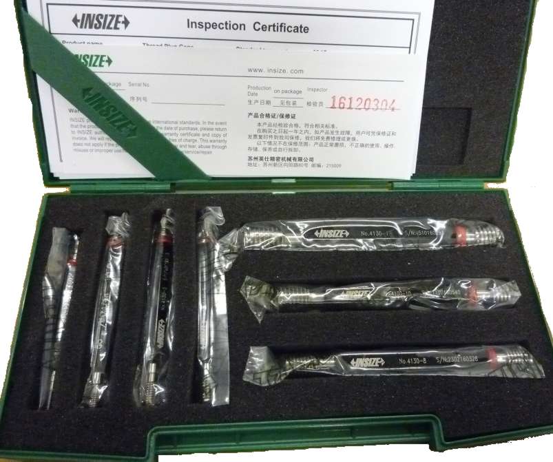 INSIZE Sats med 7 st gängtolkar M3-M12, 6H, Gå/Stopp, inkl. cert.