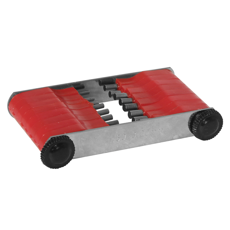 - Med 16 st stift från 1.5 mm till 3.0 mm i steg om 0.1 mm