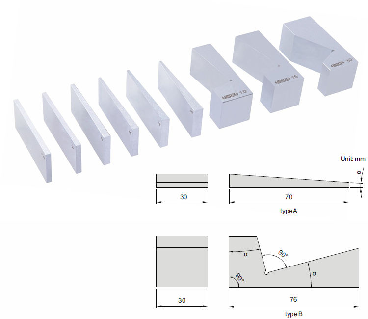Vinkel α:  1/2°, 1°, 2°, 3°, 4°, 5°